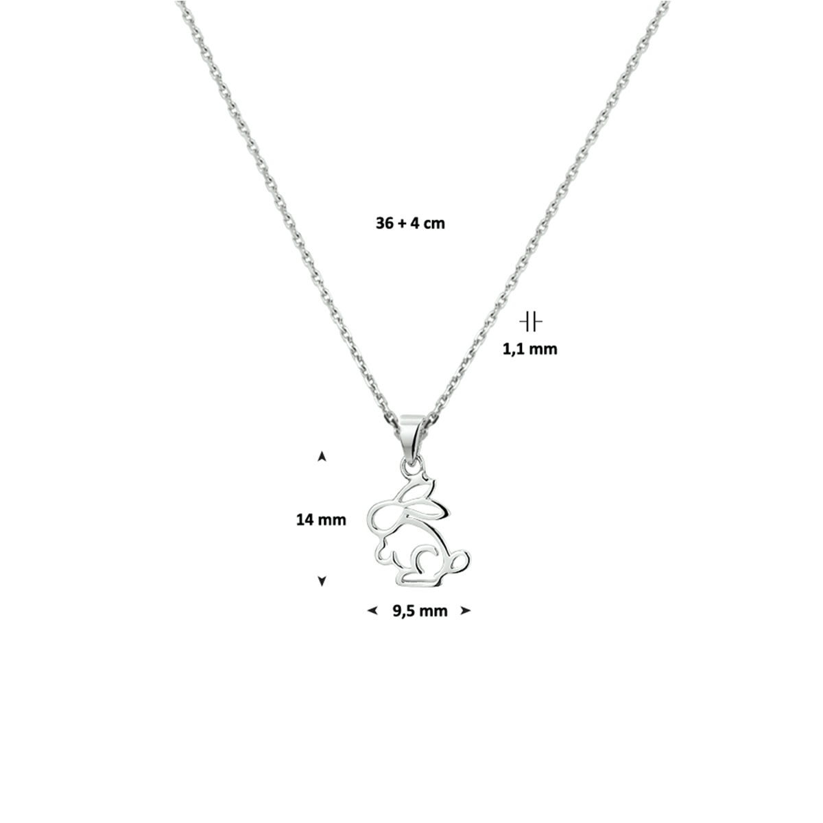 zilveren kindercollier met een konijn als hanger