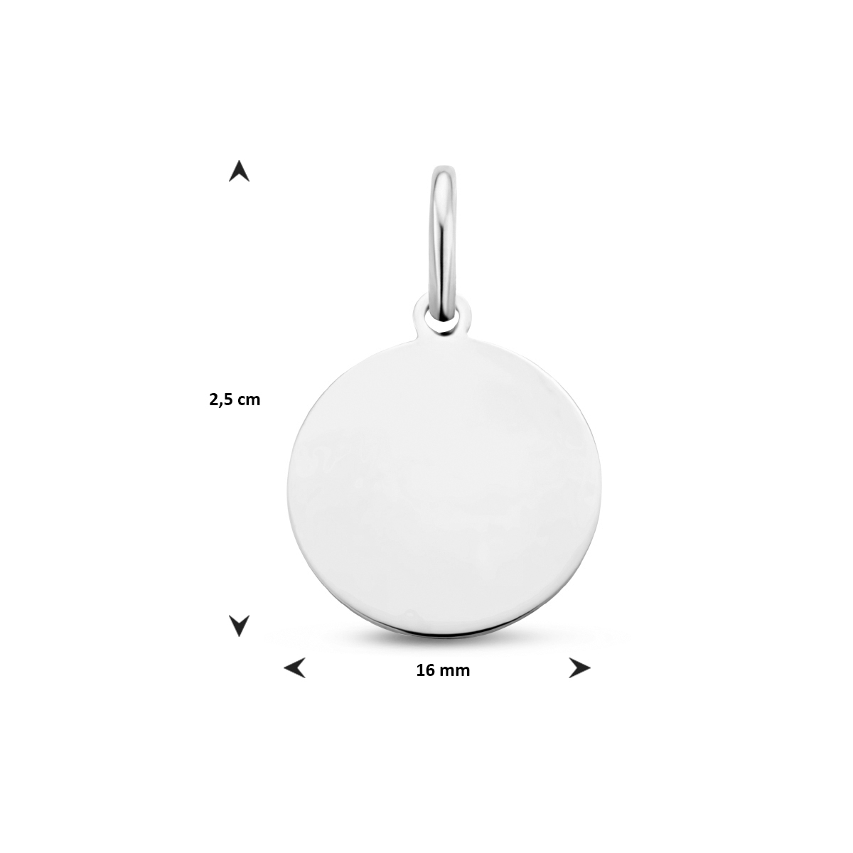 Gerhodineerd 925 zilveren ronde graveerhanger met een dikte van 0.6mm.