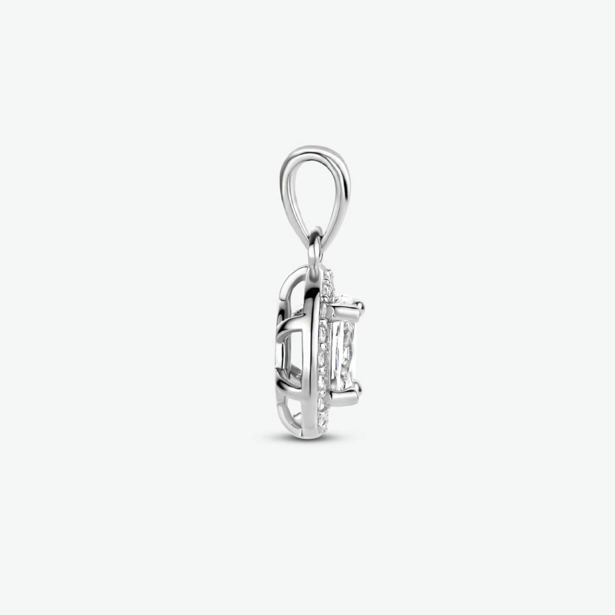 Gerhodineerd 925 zilveren hanger uitgevoerd met zirkonia. De hanger heeft een totale hoogte van 18mm.