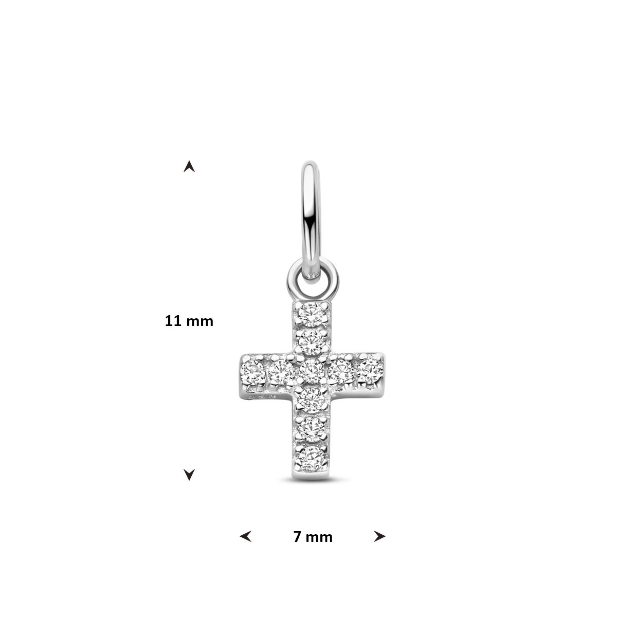 zilveren hanger in de vorm van een kruisje gezet met zirkonia's