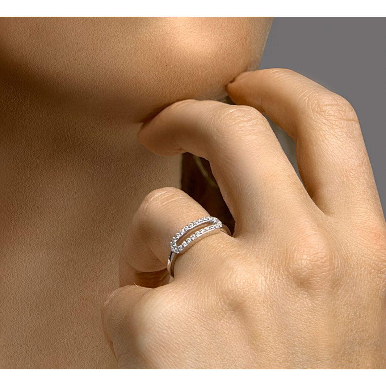 Gerhodineerd 925 zilveren ring uitgevoerd met een schitterende zirkonia rij. De ring heeft een breedte van 5mm.